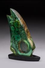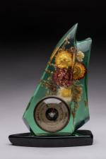 Baromètre en résine transparente à inclusions de fleurs en forme de voilier stylisé. H. 25 cm L. 16 cm