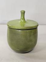 Pot couvert rond en céramique verte. Signé. H. 22 cm