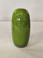 Vase de forme ovoïde allongée à col décalé en céramique verte.