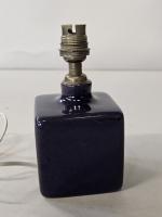 Pied de lampe de forme carrée en céramique violette. Signé. H. 11 cm