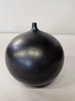 Vase de forme boule à petit col en céramique noire. Signé. H. 19 cm