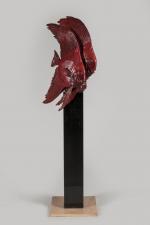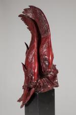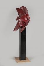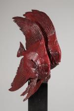 Guido Cacciapuoti (1892-1953) « Poissons exotiques » Groupe en terre cuite laquée rouge sur socle en laque...