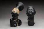 Deux têtes d'africaines : Buste de Keramos, col recollé. Signé. H. 26 cm Tête de femme. H. 22 cm TR
