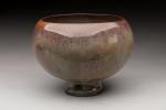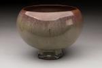 Coupe ronde sur piédouche en céramique violette nuancée. H. 13 cm D. 18 cm Infime manque à la glaçure. TR