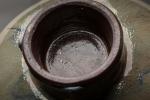 Coupe ronde sur piédouche en céramique violette nuancée. H. 13...