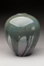Champy Vase de forme bombée à petit col ras en céramique verte. Signé. H. 21 cm Petit défaut de cuisson. TR