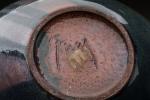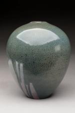 Vase de forme bombée à petit col ras en céramique verte. Signé. H. 21 cm