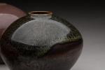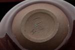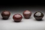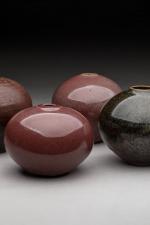 Quatre vases boules en céramique dans les tons de violet. Signés, signature non déchiffrée. H. 7 à 9 cm Petit défaut de cuisson sur l'un. TR
