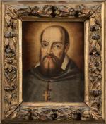 ECOLE FRANCAISE du XVIIème siècle Portrait de saint François de Sales Panneau 16,5 x 12,5 cm Restaurations. RM