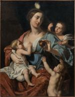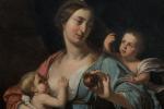 ECOLE FRANCAISE du XVIIème siècle, atelier de Philippe de CHAMPAIGNE La Charité Toile 118 x 90 cm Manques, rentoilé....