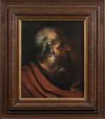 ECOLE ITALIENNE du XVIIème. Portrait d'homme de profil droit. Toile....