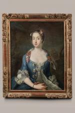 ECOLE ALLEMANDE de la fin du XVIIIème siècle Portrait de femme à la robe bleue Toile 82 x 65 cm Petits accidents, rentoilé. RM