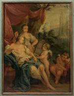 ECOLE ITALIENNE vers 1800, dans le goût de François LEMOYNE La toilette de Vénus Toile 129 x 97 cm Restaurations RM