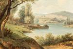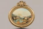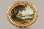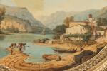 ECOLE ITALIENNE du début du XIXe siècle Chemin près d'une rivière Pêcheurs et boeufs près d'un village Paire...