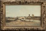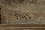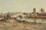 Paul SEIGNON (1820-1890). Mère et enfant à la sortie du pont de pierres. Huile sur toile. Signé en...