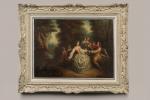 ECOLE FRANCAISE du XIXème siècle, d'après Nicolas LANCRET Le jeu de pied-de-boeuf Panneau 46 x 58,5 cm Porte une...