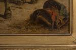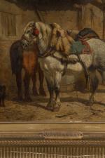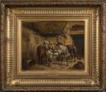 Jules-Jacques VEYRASSAT (1828-1893). Chevaux de trait à l'écurie. Huile sur panneau. Signé en bas à droite. 39,5 x 51...