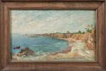 Jacques MARTIN (1844-1919). Rochers en bord de mer. Huile sur carton. Signé en bas à droite. 34 x 58,5...