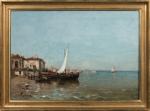 Adolphe APPIAN (1818-1898). Pêcheurs et voiliers près du village. Huile sur toile. Signé en bas à gauche. 45 x 65,5 cm. OH