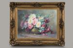 Blanche ODIN (1865-1957).Roses dans un cuivre.Aquarelle sur papier.Signé en bas à droite.58 x 78 cm.Accidents, toile gondolée. OH