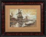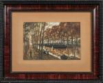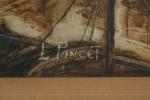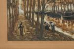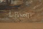 Léopold PONCET (1868-1935). - Les haleurs sur le canal. Technique mixte sur panneau. Signé en bas à droite. A...