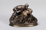 Pierre-Jules MENE (1810-1879). "Couple de chevreuils, 1859". Sujet en bronze...