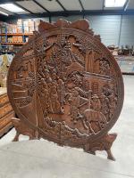 Grand PARAVENT en bois exotique sculpté en haut relief de...