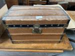 Petit COFFRE d'enfant en cuir et armature en fer. Petits accidents.