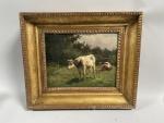 ECOLE FRANCAISE du XIXe siècle, "Vaches dans le pré", Huile...