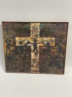 Gerardo ALBARRAN, « Crucifixion » huile sur toile signée en bas au centre, contresignée et titrée au dos. 55 x 65 cm.