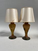 ETABLISSMENTS GALLÉ - Paire de VASES balustres à décor floral. Montés en lampe. H : 16 cm. Un cassé.