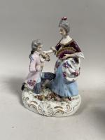 SUJET en porcelaine, « Scène galante ». Époque XXe siècle. 29 x 20 cm. Petits accidents et manques.