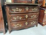 COMMODE mouvementée en noyer, ouvrant à trois tiroirs, les pieds galbés. Ornementation de bronzes ciselés.....