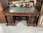 BUREAU à caissons à neuf tiroirs en acajou et placage...