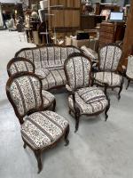 MOBILIER de salon en bois mouluré et sculpté à décor de fleurettes, les pieds galbés...