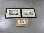 Trois GRAVURES: "Vue de port", "Vue de Malte", Vue de...