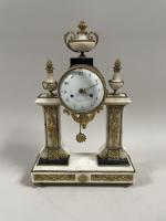 PENDULE en bronze doré et marbre blanc, le cadran émaillé blanc signé "Chailly à Lille". Style louis XVI, époque XIXe siècle. 50 x 33 cm. Petits accidents et manques.