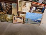 Ensemble d'huiles sur toiles contemporaines et reproduction. Accidents