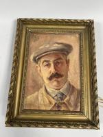ECOLE FRANCAISE moderne, "Portrait d'homme", Huile sur carton toilé porte...