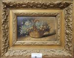 Paul BAUDRY (1828-1886), « Panier fleuri », huile sur panneau signé en bas à droite.
