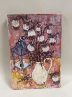 DOUZOLME. « Nature morte au pichet ». Toile signée en bas à gauche et daté « 60 ». Manques à la peinture en périphérie.