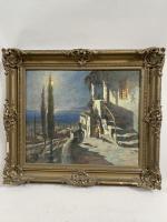 Henri PROST (né en 1939), "Paysage grec au couchant", Huile sur panneau Signé en bas à droite. 55 x 65 cm.