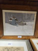 ECOLE FRANCAISE du XXe siècle, "Maisons enneigées", technique mixte sur papier portant une signature.