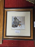 Guy FODG ? . « Nature morte au moulin à café », technique mixte sur papier signé en bas à droite.