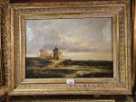 ECOLE DES FLANDRES du XIXe siècle, " Vue de moulins", Huile sur toile.