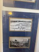 Trois PIECES encadrées sous verre contenant des vues de stades....