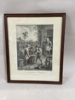 GRAVURE en noir d'après TENIERS: "L'estaminette tranquille". 37 x 27...