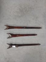Trois flûtes en bois , MOSSI, BURKINA FASO (?) (Accidents) L 51, 43 et 42 cm
