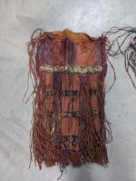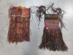 Deux sacs en cuirà décor polychrome géométrique et à lacets en cuir, NIGER (?) (petits accidents)