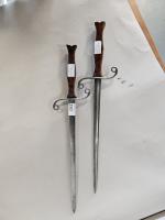 Poignées bois tourné, lames droites faites à partir de baïonnettes à douille. Travail XXème siècle. Sans fourreau.